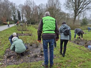 14 maart was de jaarlijkse rozensnoeidag in het Rosarium te Winschoten. Inmiddels is Groei&Bloei daar aan paar jaar bij betrokken in de vorm van leveren van instructeurs. Dit jaar hadden we voor het eerst eigen aangeschafte hesjes voor de herkenbaarheid. Hoe mooi wil je het hebben. De ongeveer 50 deelnemers werden in groepjes verdeeld en na een instructie (korte lezing) van Marnix Bakker van de Nederlandse Rozenvereniging ging ieder aan de slag. Aan het einde poseerden alle instructeurs van Groei&Bloei en de gemeente in de nieuwe hesjes. Een mooie dag met voor alle partijen een goed resultaat!