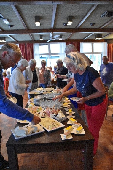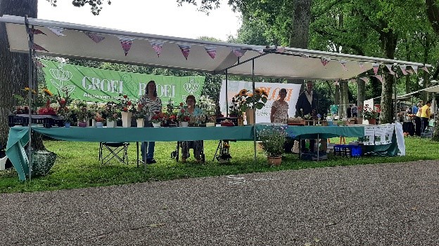 Hierna reden we naar onze tweede tuin “In de tuin van Dorth”. Naast de kas stond een schuurtje die was ingericht als meditatieruimte…Zo rustgevend ingericht! In de sfeervolle schuur hebben we onze lunch opgegeten. De volgende tuin die op ons wachtte was vlakbij: in Gorssel, tuin “De Kamperfoelie” van Otto en Judith van Harmelen. In de binnentuin waren veel verschillende dahlia’s geplant. Daarbuiten lag een grote landschapstuin, ingericht met struiken, boomgaard, moestuin, grote vijver en vooral de prachtige wilde bloemenborders!! Daar vandaan had je mooi zicht op het ooievaarsnest Als laatste activiteit gingen we naar Kwekerij Coen Janssen in Dalfsen. Hij heeft zich de laatste jaren, vanwege de droge zomers, gespecialiseerd in droogtebestendige planten. Hier hadden veel van ons zich al op verheugd!! Tjonge jonge, wat hebben we veel mee genomen! Gelukkig was er genoeg ruimte onder in de bus, al moesten bepaalde planten op hun kant worden gelegd, vanwege de hoogte En toen op weg naar restaurant “Madrid” in Vilsteren, waar het diner op ons wachtte.Dat was weer fantastisch en heel lekker!! Vooral toen het toetjesbuffet kwam werden er veel mensen zeer enthousiast! Wat een keuze aan heerlijkheden Moe maar voldaan liet iedereen zich weer in de bus zakken en werden we door Kees weer veilig in Winschoten afgezet. Het was weer een gezellige, prachtige dag met veel genietmomenten. Even nog een compliment voor Gerda: je had weer een schitterend programma samengesteld voor deze buitendag, en voor onze chauffeur Kees, met zijn informatieve en humoristische verhalen onderweg! Vacatures Groei & Bloei Winschoten, September 2025In verband met aftredende bestuursleden en uitbreiding van werkzaamheden zijn we op zoek naar:
